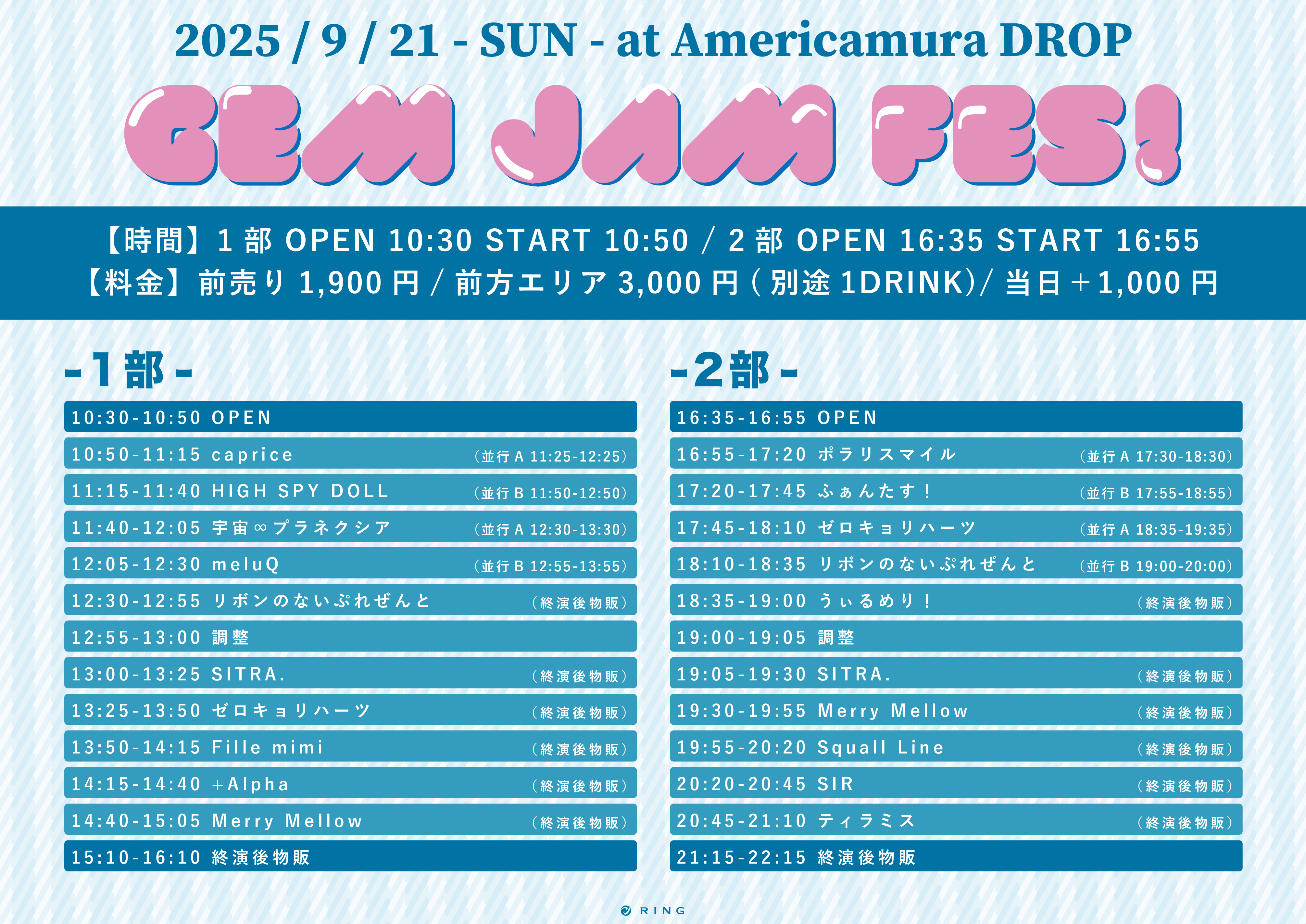 - 1部:OPEN 10:30 / START 10:50 2部:OPEN 16:35 / START 16:55
