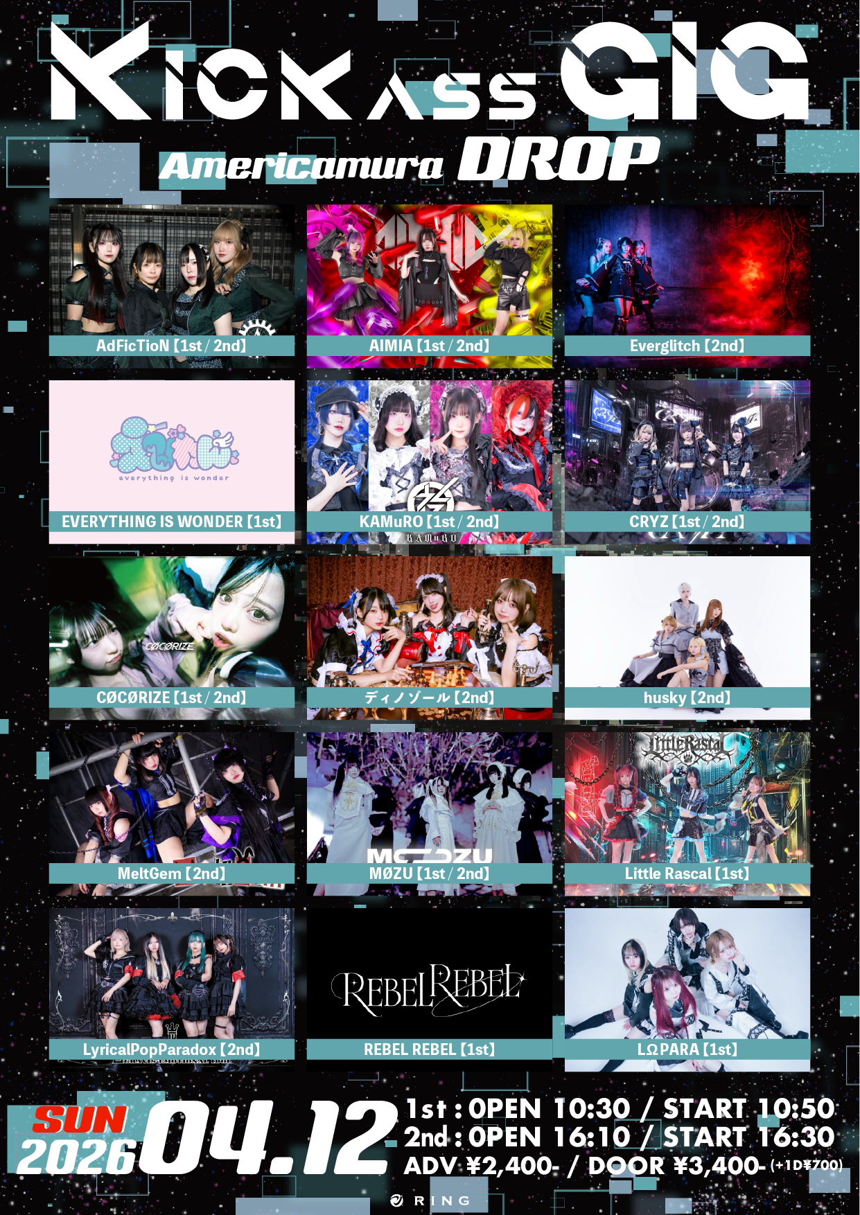 - 【1st】AdFicTioN / AIMIA / EVERYTHING IS WONDER / KAMuRO / CRYZ / CØCØRIZE / MØZU / Little Rascal / REBEL REBEL / LΩPARA【2nd】AdFicTioN / AIMIA / Everglitch / KAMuRO / CRYZ / CØCØRIZE / ディノゾール / husky / MeltGem / MØZU / LyricalPopParadox