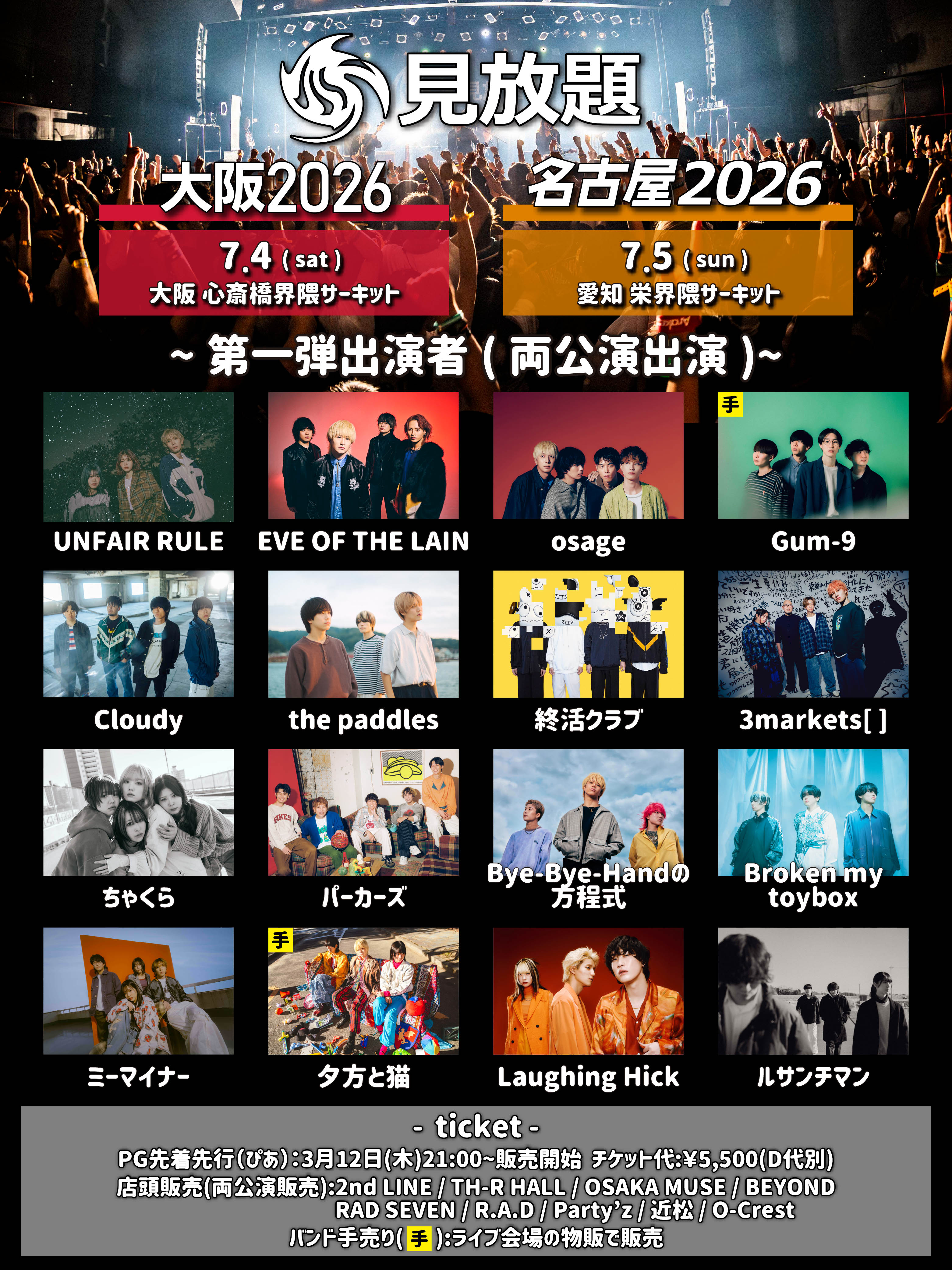 *チケットはチケット交換所(SUNHALL B1F)にて全会場周遊可能リストバンドに交換してください。