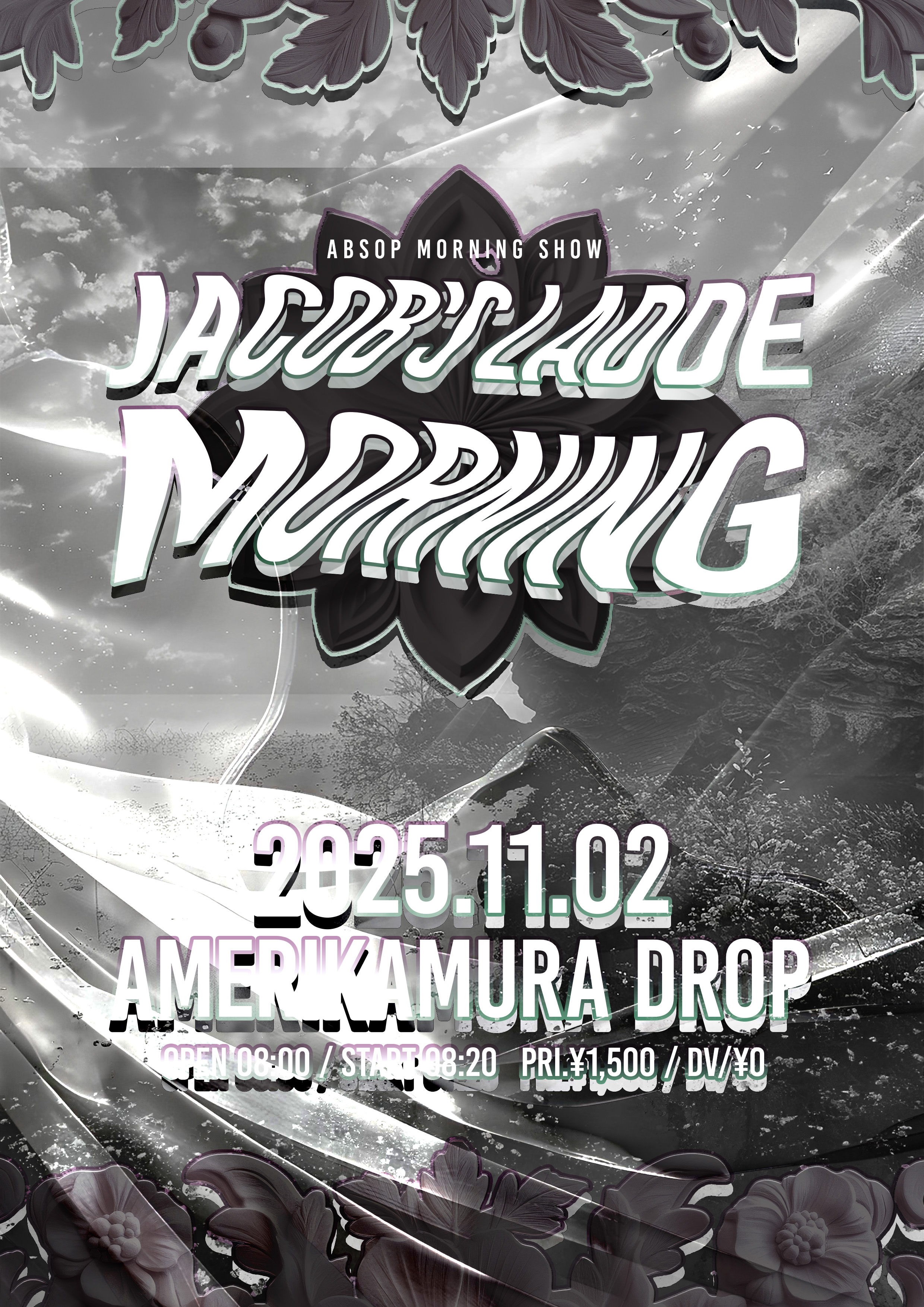 アメリカ村 DROP(ドロップ) スケジュール 2025.11.02(Sun) acob's ladde morning [ACT] アブソプ [OPEN/START] 8:00/8:20 [料金] 優先 ¥1,500 / 一般 無料 (入場時別途1D代金¥700-必要) 【予約】 https://t-dv.com/acobsLaddeMorning 10/08 20:00〜 11/02 08:20 (問)アメリカ村DROP 06-6213-9101