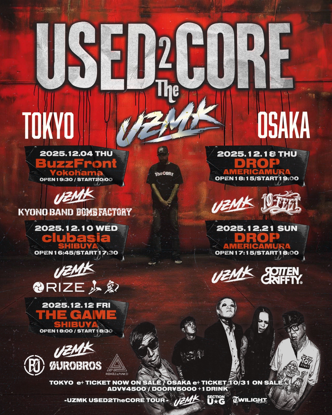 アメリカ村 DROP(ドロップ) スケジュール 2025.12.21(Sun) USED2TheCORE TOUR 大阪SERIES DAY.2 [ACT] UZMK / ROTTENGRAFFTY [OPEN/START] 17:15/18:00 [料金] ADV/DOOR ¥4,500/¥--(入場時別途1D代金¥700-必要) (問)アメリカ村DROP 06-6213-9101