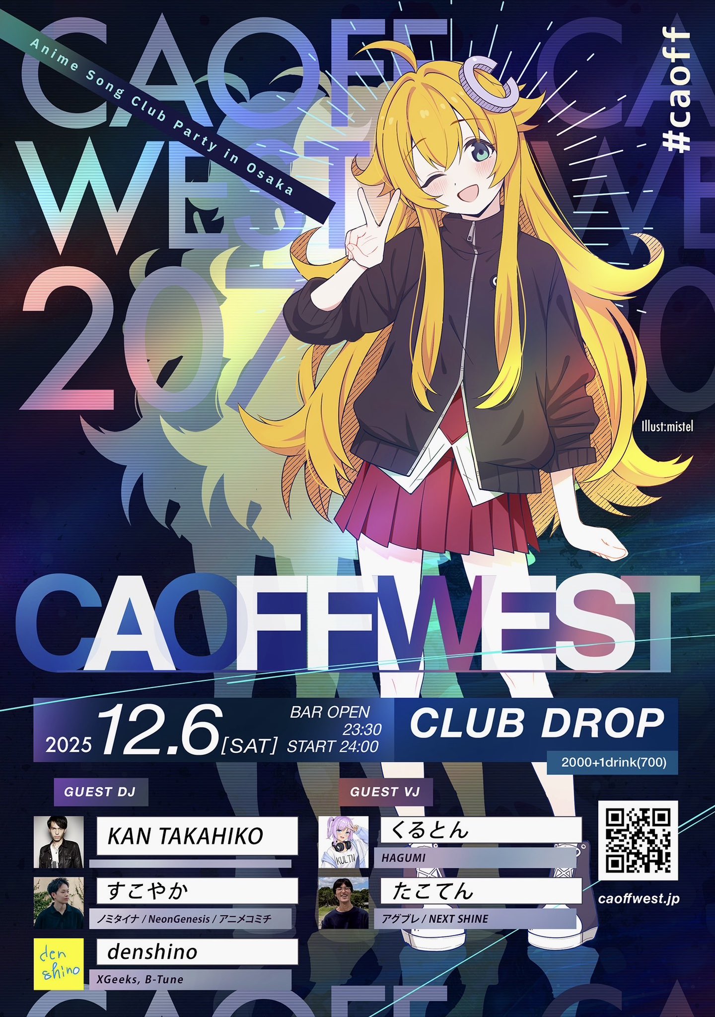 アメリカ村 DROP(ドロップ) スケジュール 2025.12.06(Sat) “CAOFF WEST 207”<カオフ・ウエスト 207> [ACT] ///// GUEST ///// DJ:KAN TAKAHIKO / すこやか(ノミタイナ / NeonGenesis / アニメコミチ) / denshino(XGeeks, / B-Tune) VJ:くるとん(HAGUMI) / たこてん(アグブレ / NEXT SHINE) [OPEN/START] BAROPEN 23:30/START 00:00 [料金] ¥2000(+1drink¥700) 【12月タイムテーブル】 Coming soon...
