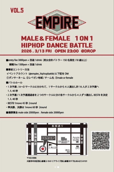 【EMPIRE VOL.5】MALE&FEMALE 1 ON 1 HIPHOP DANCE BATTLE