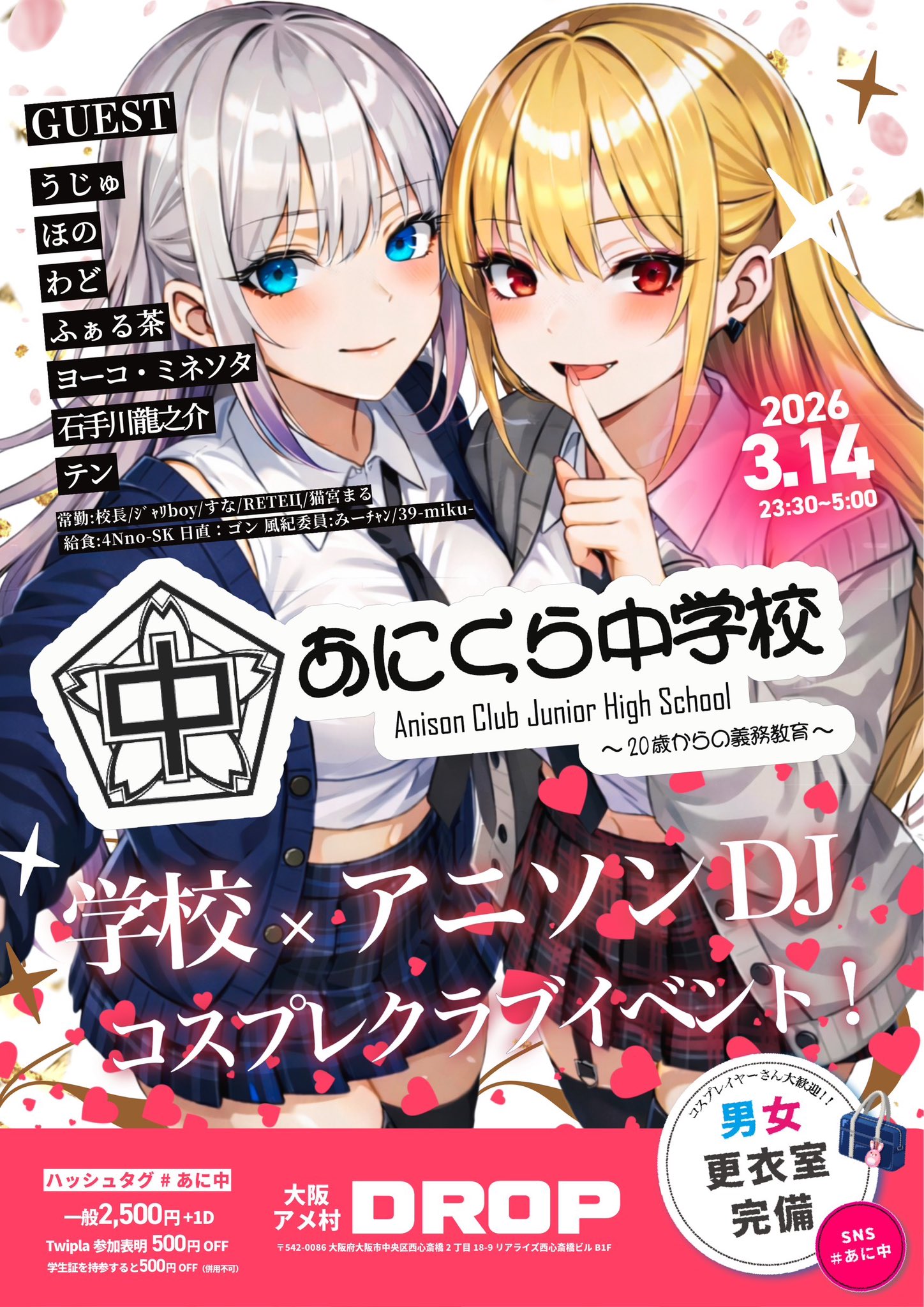 - 一般:¥2500(+1drink¥700) Twipla 参加表明割:¥500 OFF