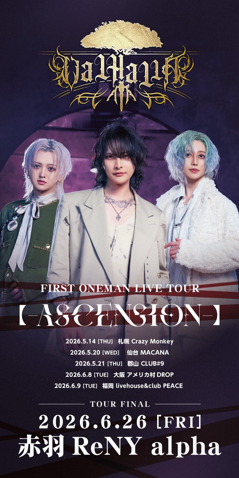 アメリカ村 DROP(ドロップ) スケジュール 2026.6.08(Mon) VALHALLA FIRST ONEMAN LIVE TOUR[-ASCENSION-] [ACT] VALHALLA [OPEN/START] 16:30/17:00 [料金] 優先入場+特典付きSチケット¥15,000- /一般¥5,000-(入場時別途1D代金¥700-必要) (問)アメリカ村DROP 06-6213-9101