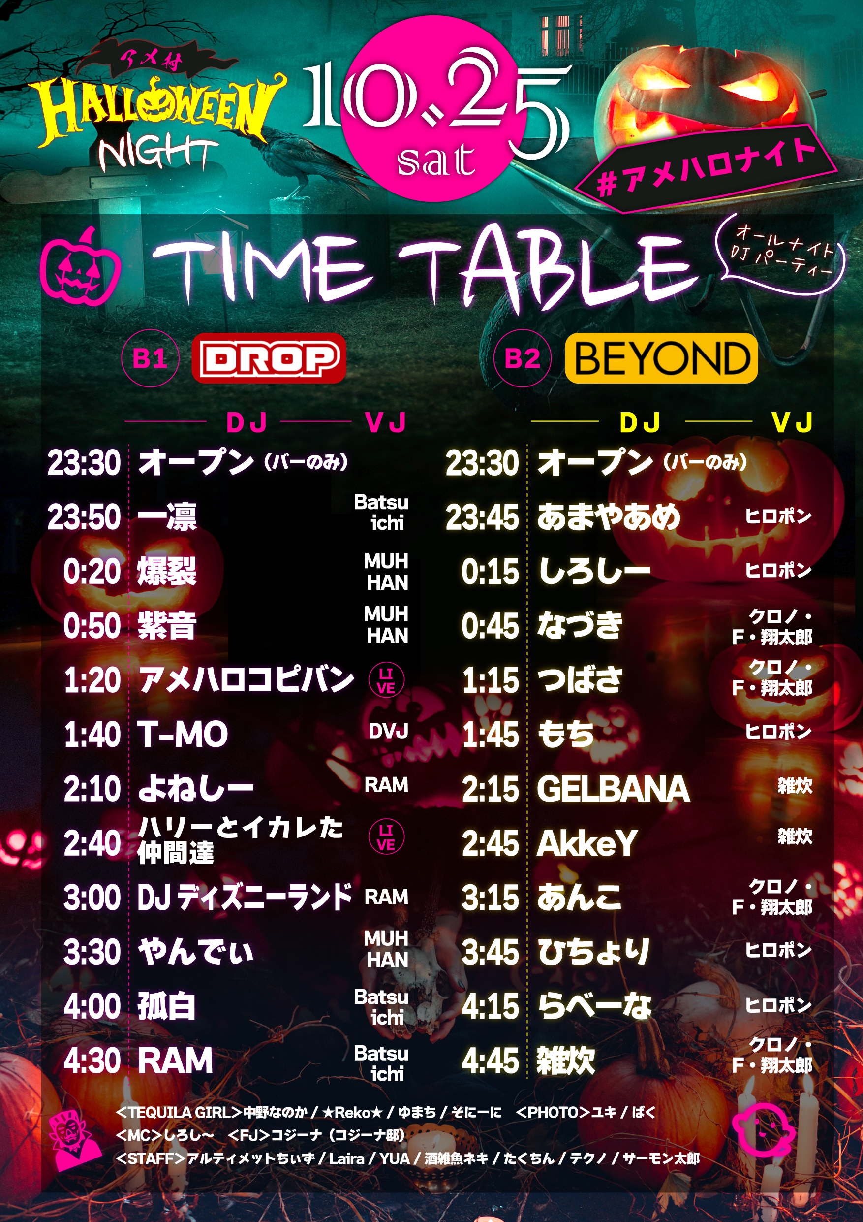 - <LIVE>アメハロコピバン<DJ>DJディズニーランド / 爆裂(CRXSH/時の扉) / あんこ(さぶステ/ゲーマーズヘブン) / RAM(ヲタ霊/異臭騒ぎ) / AkkeY(KAGIROI / USAGI Production) / 紫音(J-ROCK大作戦/LABAR) / らべーな(イケナイ / YAAAAAS) / 一凛(BunGeee⭐️/ヲタ霊) / よねしー(ひみつきち!/untitled) / 孤白(ヲタ霊/くろすおーば〜) / T-MO(沖縄) / GELBAN(沖縄)(ANIMELT/OPED) / あまやあめ / リュウa.k.aやんでぃ(EVILCIRCUS/漆黒の音楽会) / なづき(さぶクル) / もち(Kyun) / DJ雑炊(HOTLIP/M@STER RAMPAGE) / つばさ(Freja/XOXODAY) / しろし〜(花見ンヌ)<VJ> / Batsuichi(Bungeee☆/ラビフロ!!) / クロノ・F・翔太郎(技☆術☆部) / ヒロポン(YAAAAAS!!!!!/キュアカニ) / MUHHAN <TEQUILA GIRL>★Reko★ / 中野なのか / ゆまち <PHOTO>ばく / ユキ <STAFF>FJコジーナ(コジーナ邸) / アルティメットちぃず / Laira(ほし☆グリ/まいスタ) / YUA(ボカロナイト/みんめしF) / 酒雑魚ネキ / たくちん / テクノ / サーモン太郎(BunGeee⭐️)