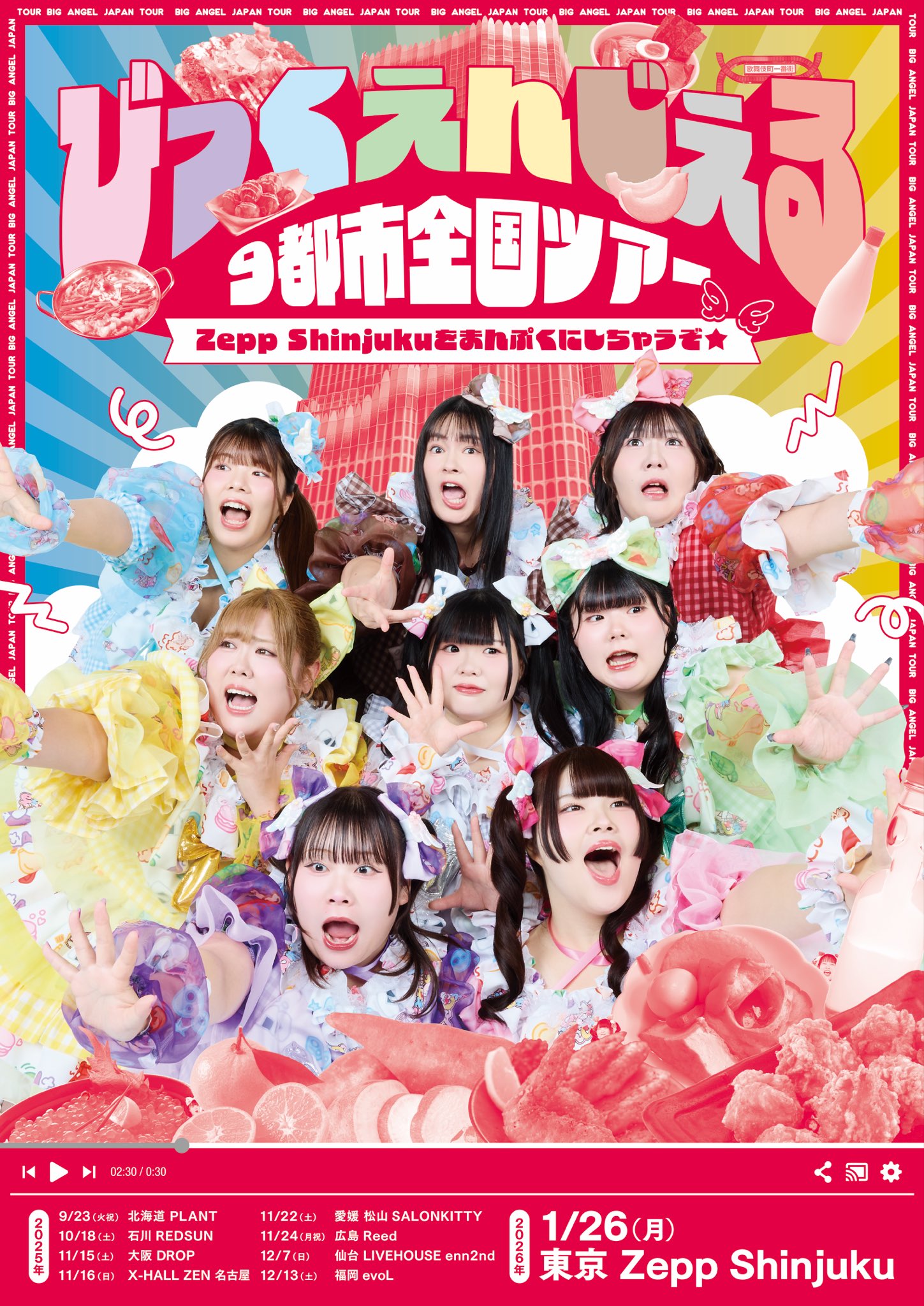 アメリカ村 DROP(ドロップ) スケジュール 2025.11.15(Sat) びっくえんじぇる9都市全国ツアー〜Zepp Shinjukuをまんぷくにしちゃうぞ☆〜 [ACT] びっくえんじぇる [OPEN/START] 10:00/11:00 [料金] 前方6900円/一般3900円(入場時別途1D代金¥700-必要) (問)アメリカ村DROP 06-6213-9101