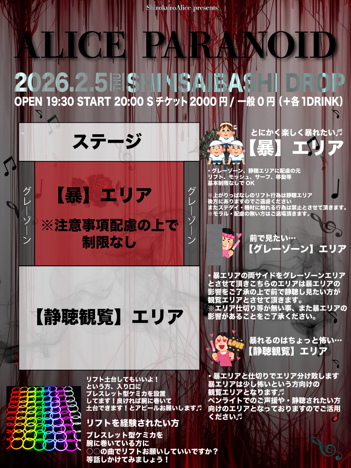 ■本イベントは前方エリアに限りリスト・ジャンプ・移動・モッシュ・サーフ等をOKとさせて頂きます。
