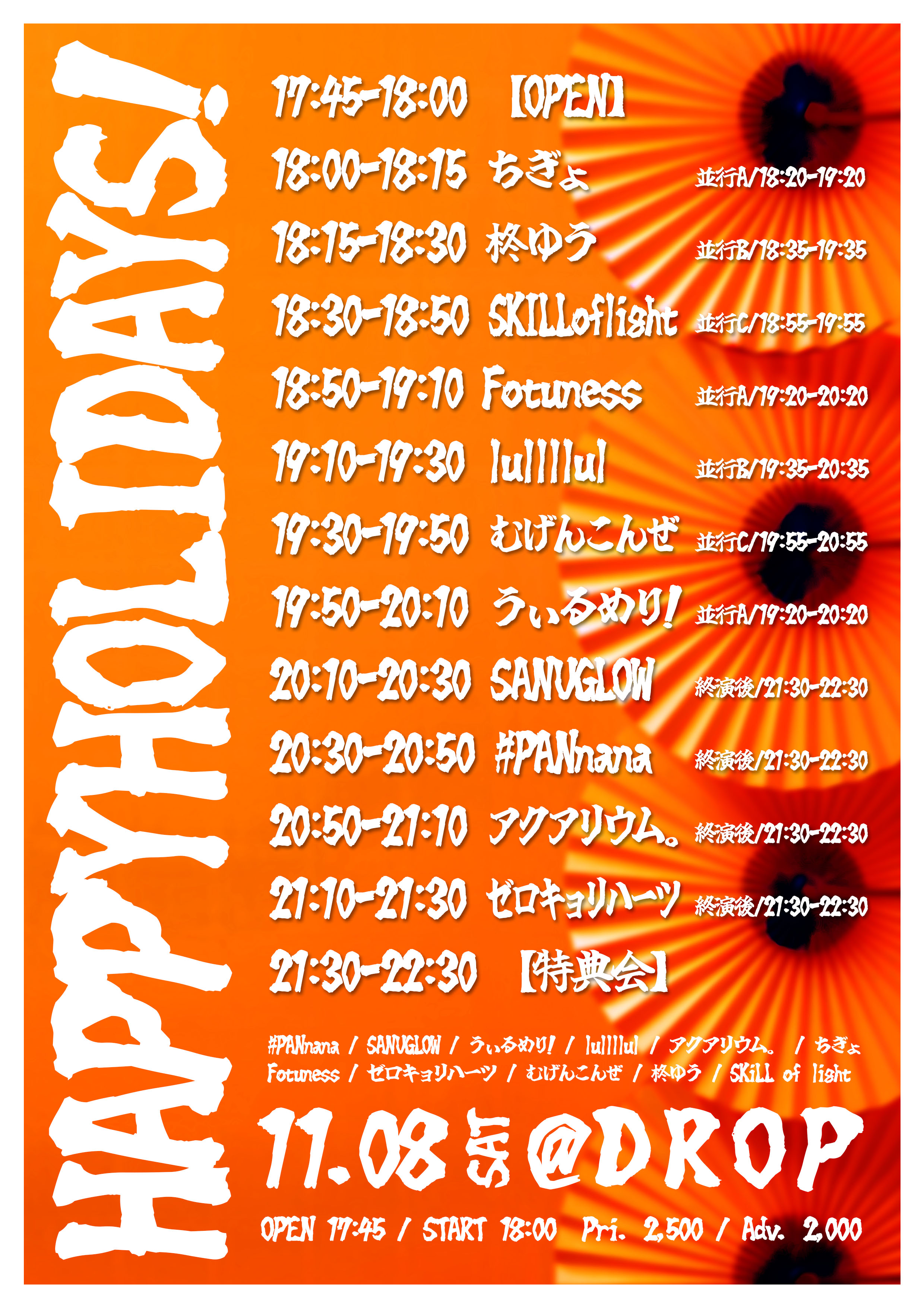 - 優先 ¥2,500 / 一般 ¥2,000 (+1D)