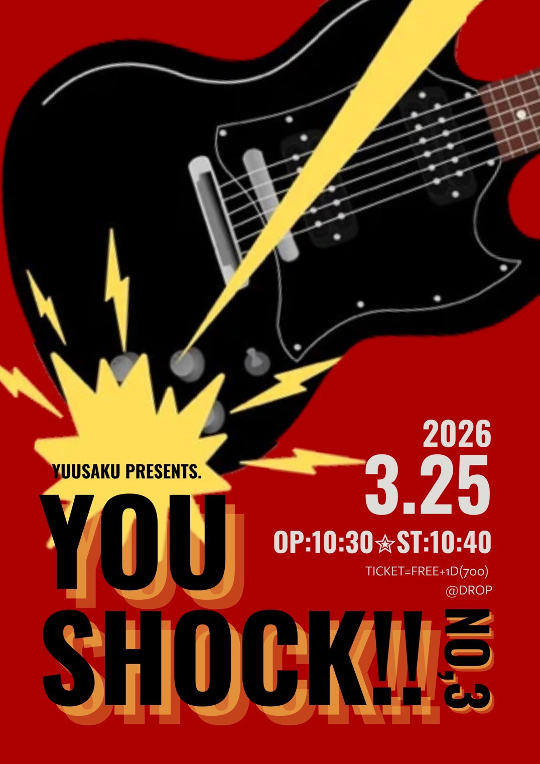 アメリカ村 DROP(ドロップ) スケジュール 2026.3.25(Wed) YUUSAKU presents. YOU SHOCK!! vol.3 [ACT] うぉんかなっど / チケットイープラス / 激熱バンド / ROUTE66 / RIKU SHOCK!!! / THE SECOND / Official海人dism / 青春☆こにゃこにゃクラブ / THE UMINCHU ACARETTES / 養殖屑 / KANSAI TUNE / 綾夏美耶結 / Age Factory / 辻昇吾 [OPEN/START] 10:30 / 10:40 [料金] FREE(入場時別途1D代金¥700-必要) (問)アメリカ村DROP 06-6213-9101