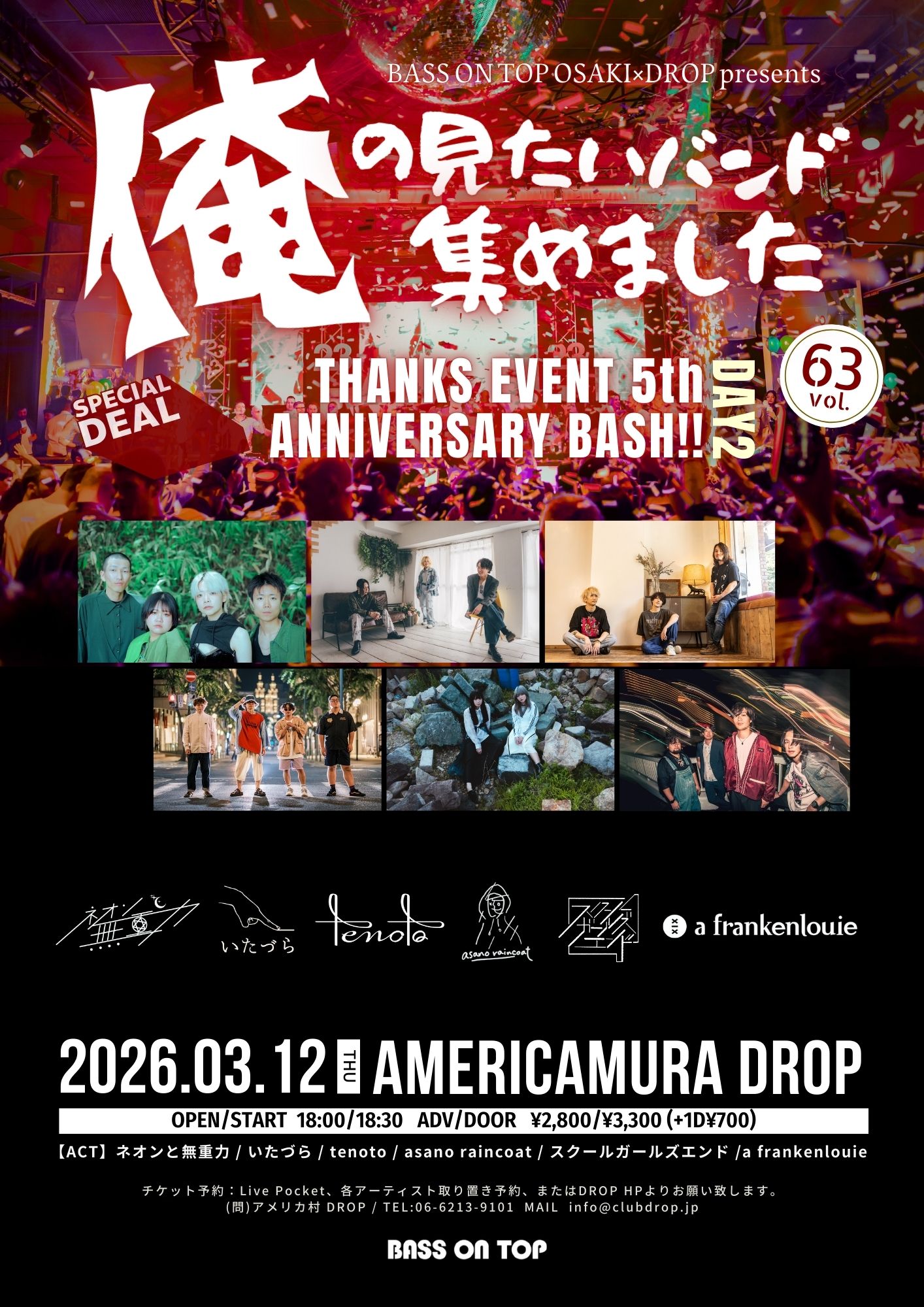 BASS ON TOP OSAKI×DROP presents .俺の見たいバンド集めました vol.63 TAHNKS EVENT 5th ANNIVERSARY BASH!! DAY2